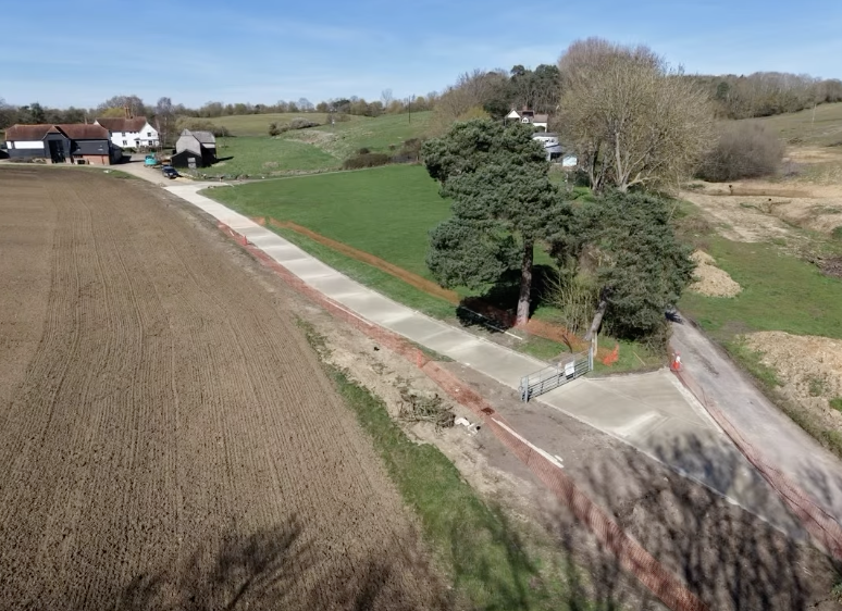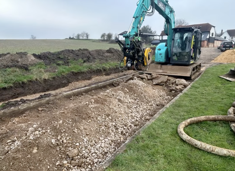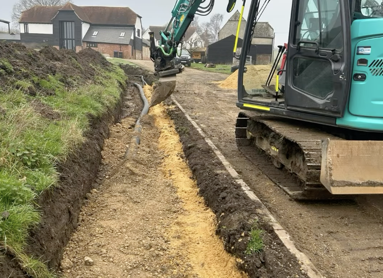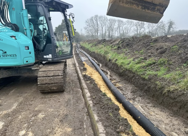 We reopened a disused drive, replaced a bodged 6” twin wall to 4” water pipe. Added some gulleys and additional electrical ducts, crushed and re-concreted the drive.